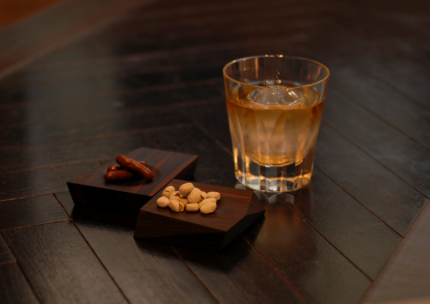 空間とサービスにこだわりを持つBARからのリクエストは「黒檀でオリジナルの豆皿を作ってほしい」。モックアップサンプルを何種類も作製しその中から選んでいただく形で作業を進めました。黒檀は硬い素材なのでエッジの効いたシャープなラインを生み出せます。十二神をイメージした彫刻のような作品になりました。