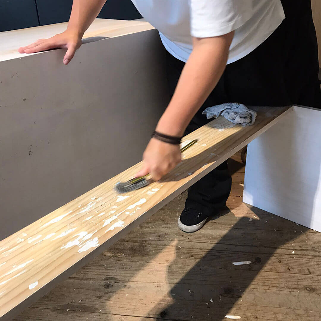 ボンドで固定していたテーブルの背板を剥がして
