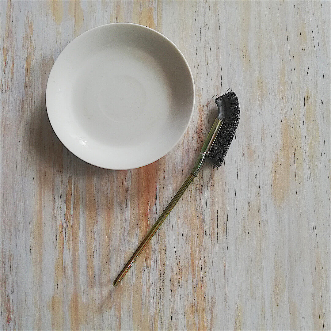 トゲトゲの、指に刺さるくらいの固めなステンレス製ブラシです。