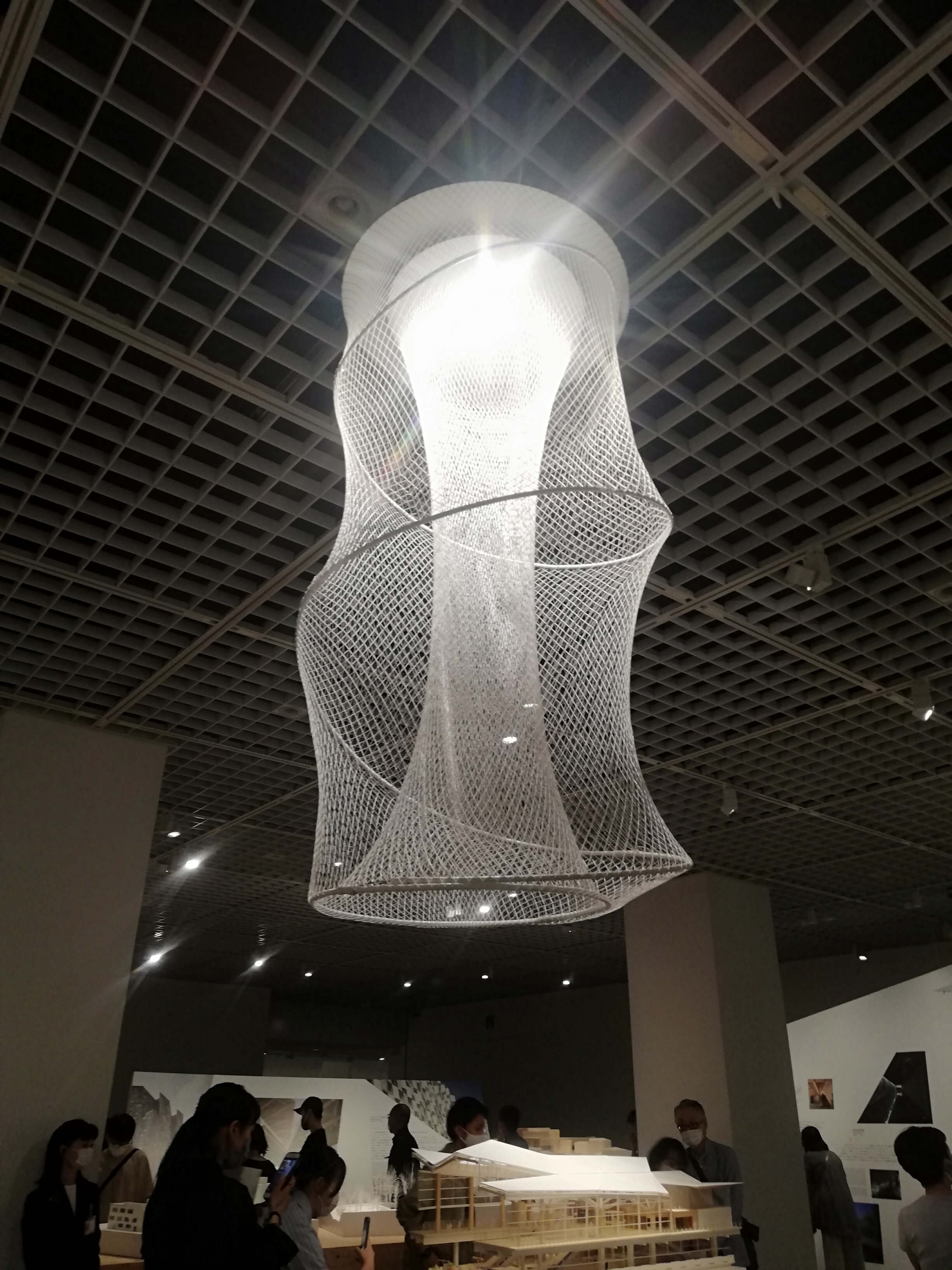 光を透過する布や、蚕の吐き出す糸を使った柔らかい建築が展示されていて、空間全体も優しい雰囲気に包まれていました。