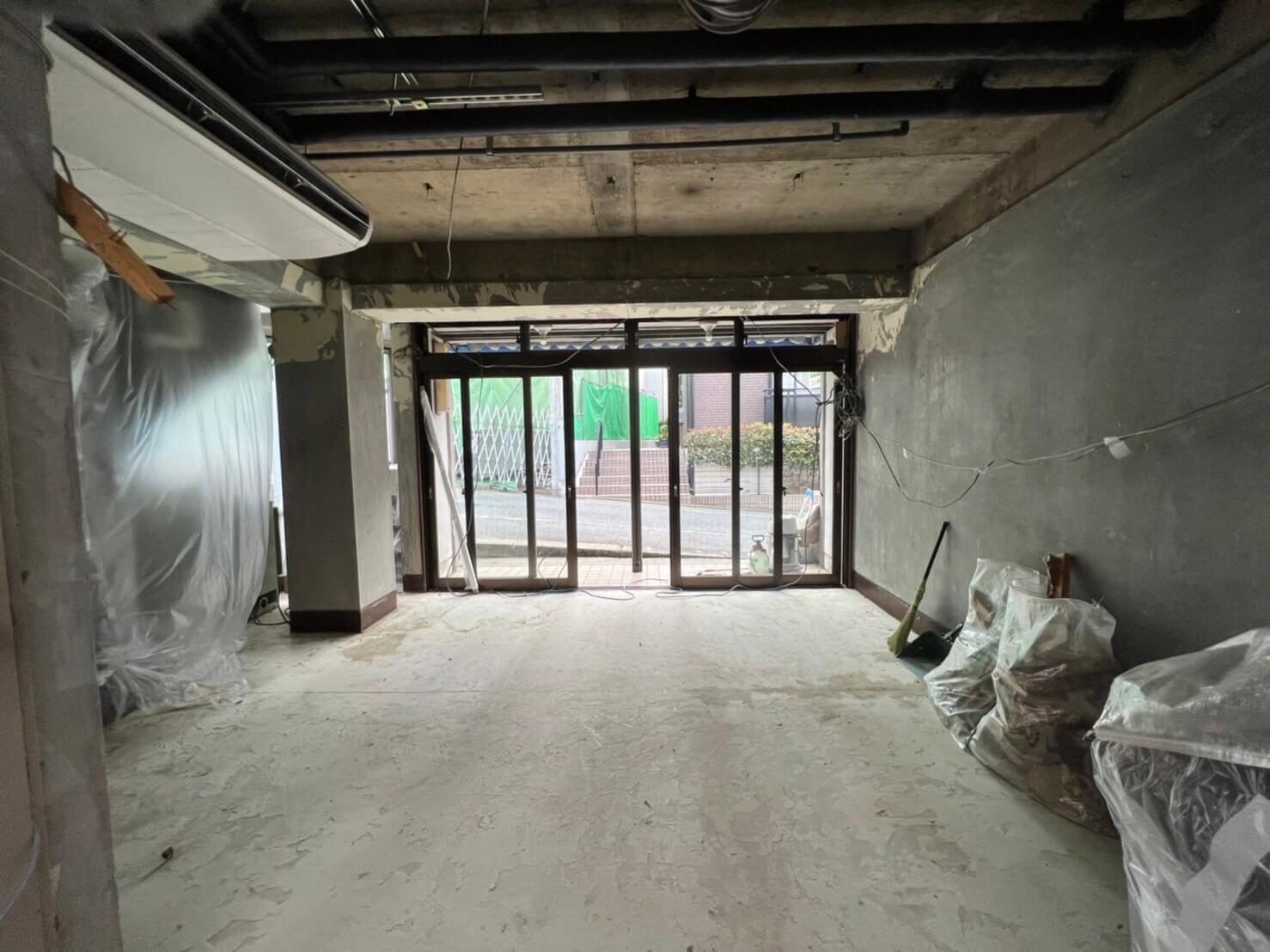 既存の床、壁、天井を剥がしスケルトンの状態にしていきます。スケルトンとは「骨格」の意味ですが、建築工事においては柱や梁、床などの構造躯体を現す状態にする工事のことを指します。